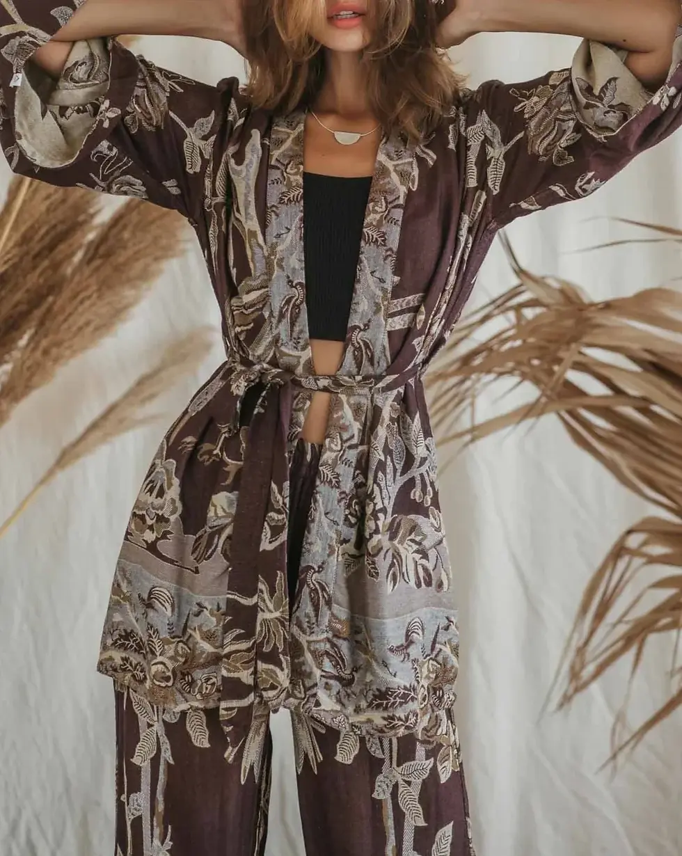Burnt Umber kort kimono